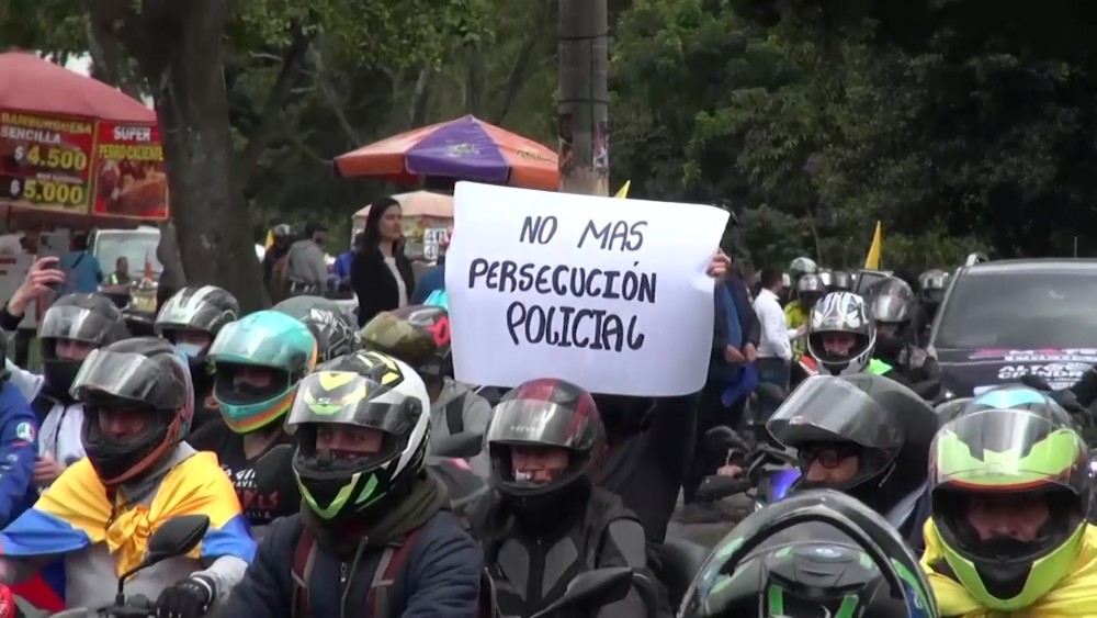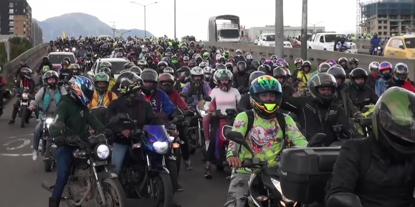Hundreds of motorcyclists drove through Bogota's streets on Thursday to protest against a law which prevents them having a male passenger on their vehicles on some days of the week.