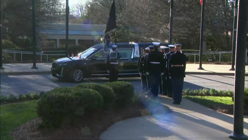 Crowds gathered along the roadside to say their goodbyes, with many waving small US flags, snapping photographs or saluting as the motorcade rolled slowly past. US flags have been flying at half-staff around the country since Carter died on December 29 at age 100 in his hometown of Plains, Georgia.