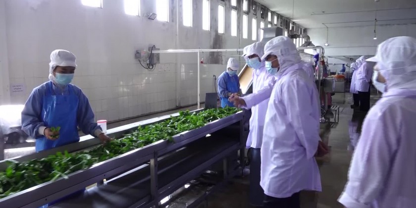 Shan State Chief Minister U Aung Aung, accompanied by officials, visited the Myanmar Belle Dehydrated Vegetable Factory in Wahyonepin Village of Heho Township in Kalaw District on Friday.