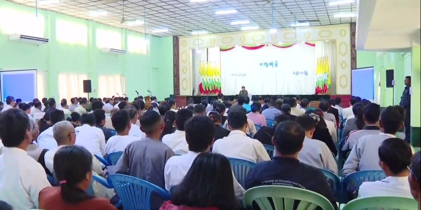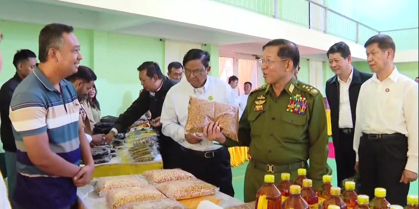 Chairman of the State Administration Council Prime Minister Senior General Min Aung Hlaing met with departmental personnel and MSME entrepreneurs from Meikhtila District in Mandalay Region on Friday.