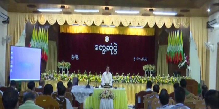 Chief Minister U Myat Ko reported on implementation of MSME businesses in the district and region, assistance being provided for development of MSME businesses and conducting training for technology.