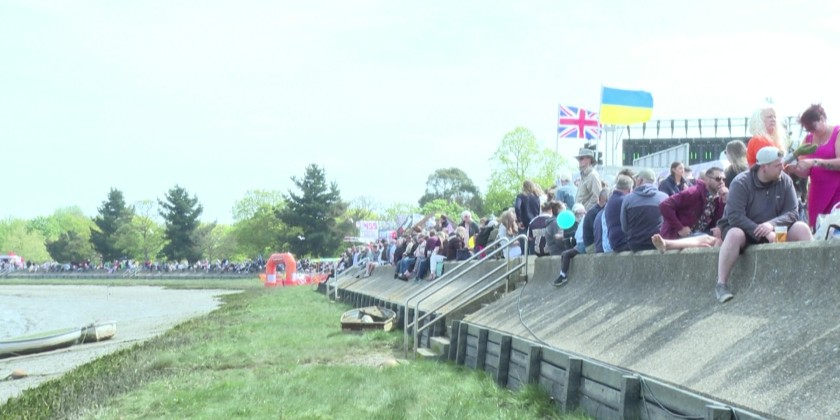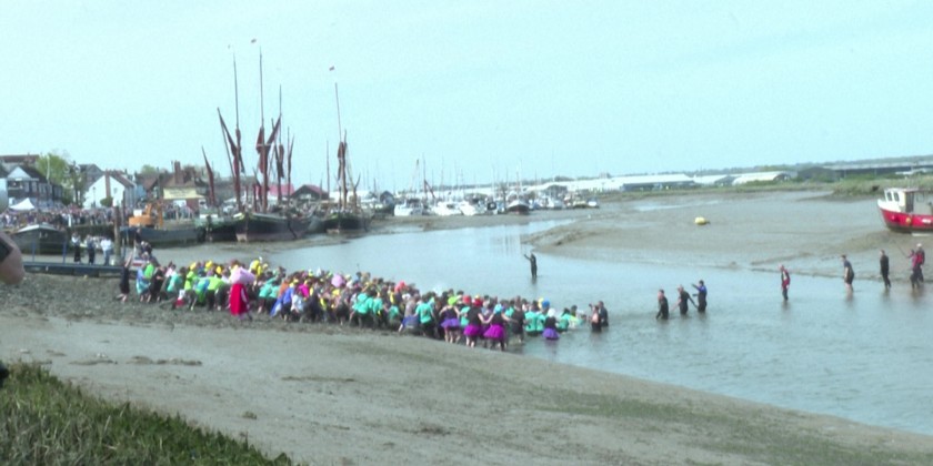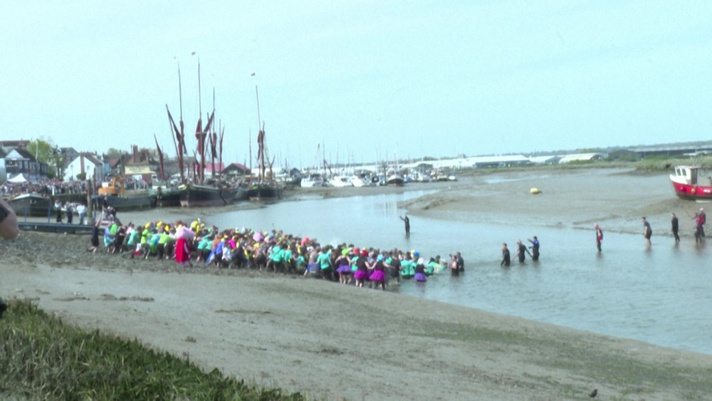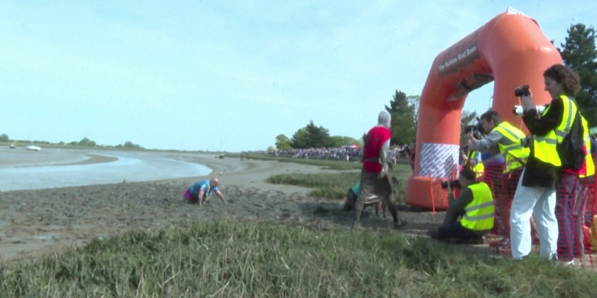 Dressed up as tea cups, frogs and anything in between, competitors battle for glory at the annual 'Maldon Mud Race' in the south of England, raising money for charities and giving a boost to the local community. Hundreds of competitors take part in extreme muddy conditions. .They may run across riverbeds or obstacle courses. Competition Style is not just running also wading, crawling, slipping.