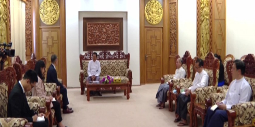 Union Minister for Foreign Affairs U Than Swe received Ambassador Extraordinary and Plenipotentiary of the Kingdom of Thailand to the Republic of the Union of Myanmar Mr. MongkoiVisitstump at the Ministry of Foreign Affairs in Nay Pyi Taw on 15 February.