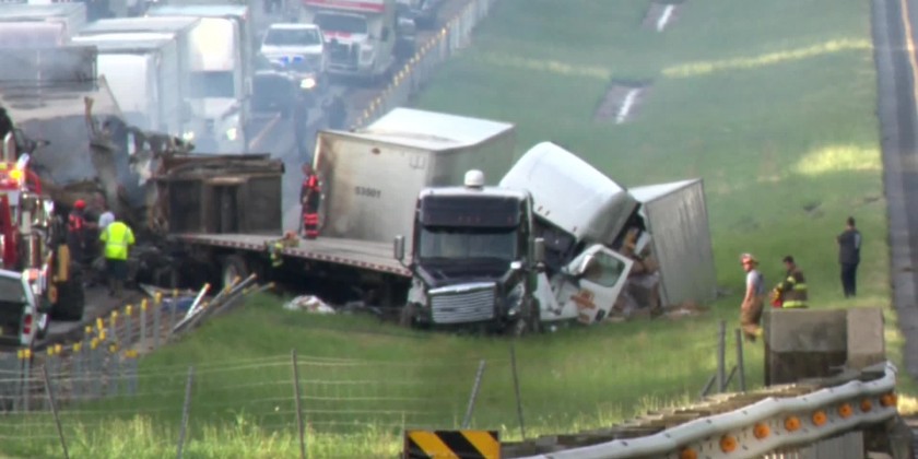 Multiple people were killed in fiery collisions Wednesday that involved eight tractor-trailer rigs and at least three other vehicles on heavily-traveled Interstate 30 in southwestern Arkansas.