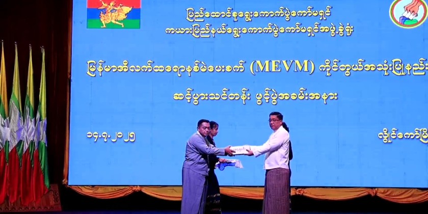 The opening ceremony of the Multiplier Training Course on handling and using the Myanmar Electronic Voting Machine (MEVM) was held at the State Hall in Loikaw in the morning on July 14. Attendees included State Chief Minister U Zaw Myo Tin, the Commander of Regional Military Operations Command, the State Chief Justice, members of the State Government, departmental officials, and trainees from various departments.