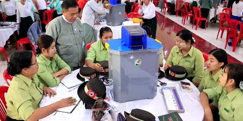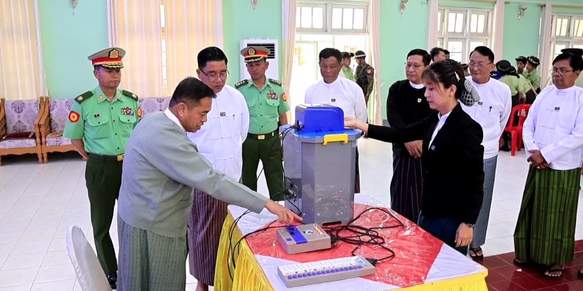 Following this, the State Election Officer provided a practical demonstration of how to use the MEVM to the Chief Minister and other officials at the Loikaw City Hall. The Chief Minister also observed and encouraged the ongoing MEVM training sessions, noting the enthusiastic practical participation of the trainees.