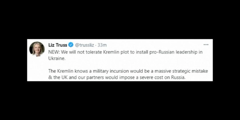 The U.K. government made the claim based on an intelligence assessment, without providing evidence to back it up.  It comes amid high tensions between Moscow and the West over Russia's designs on Ukraine.