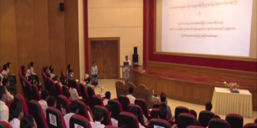 One hundred students from No.11 Basic Education High School in Nay Pyi Taw participated in the program, engaging in activities such as reading books, e-books, browsing the library's collection, and participating in the quiz program. Deputy Minister Daw Nu Mra Zan awarded gifts to the winning students at the quiz program.