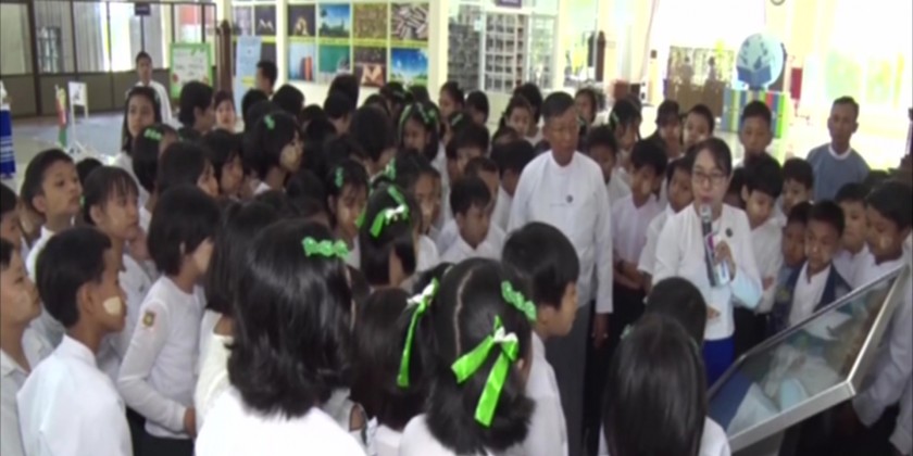 Additionally, students participated in a quiz program and were awarded prizes for their knowledge. After the museum visit, the Union Minister and party proceeded to the National Library (Nay Pyi Taw) to participate in a Children's Library Activity.