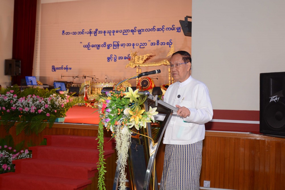 Later, Mandalay Region Chief Minister U Maung Ko and the Deputy Minister for Education U Zaw Win extended greetings and the rector of the National University of Arts and Culture (Mandalay) reported on conducting the program.