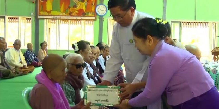 Grandmother Daw Chaw Yin was born in Myay Ni Gone village of Magway and she is the youngest among 7 siblings. At present, she has 4 daughters, 11 grandchildren, 22 great-grandchildren and 11 children of great-grandchildren. And, the government assists 10,000 kyats per month, it’s reported.
