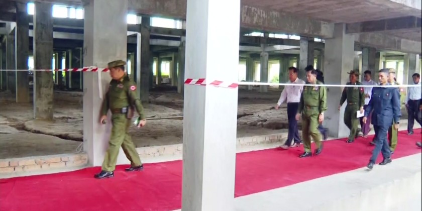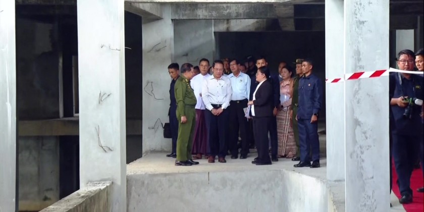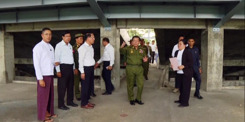 Acting President and Chairman of the State Security and Peace Commission Senior General Min Aung Hlaing visited the construction site of Myanmar Art Center in Yangon on Friday. Union Minister for Information U Maung Maung Ohn reported on the updates of the construction works.