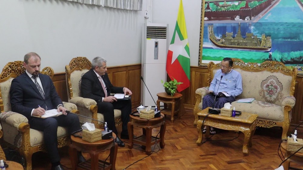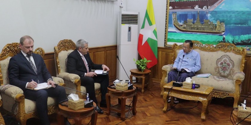Dr. Kan Zaw, Union Minister for Investment and Foreign Economic Relationsreceived Mr. Uladzimir Baravikou,Ambassadorof the Republic of Belarus to the Republic of the Union of Myanmar with residence in Hanoi at Office No. 1, Nay Pyi Taw in the morning of February 19,2024.