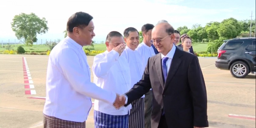 Former President U Thein Sein was accompanied by U Thant Kyaw, Chairman of the Myanmar Institute of Strategic and International Studies (MISIS), U Tin Oo, Chairman of the Myanmar-China Friendship Association, DawThan Than Nu, Chairperson of the U Nu-Daw Mya Yi Foundation and other officials.