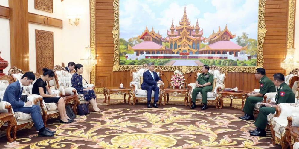 Commander-In-Chief of Defence Services Senior General Min Aung Hlaing received Chinese Ambassador Mr. Chen Hai in Bayinnaung Guest Hall, Nay Pyi Taw, on Thursday.
