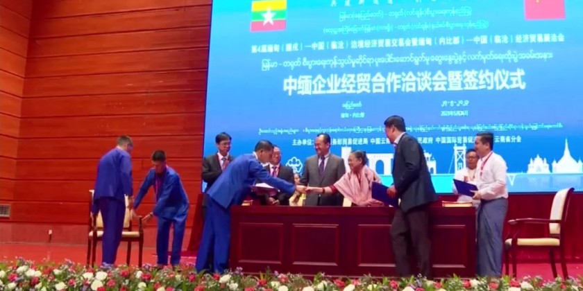 The trade agreements include 5 MoU among Myanmar companies and 10 MoU between China and Myanmar. Companies from the two countries signed agreements on business cooperation for agricultural products, foodstuffs, soft drinks and beverages, pharmaceutical products, household appliances and electric vehicles, development of industrial zone, banking services and export of beans and pulses according to the Director-General of Myanmar Trade Promotion Organization.