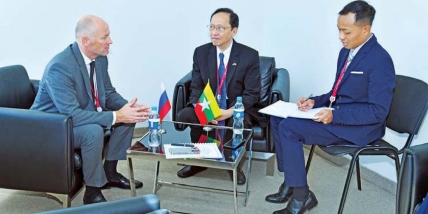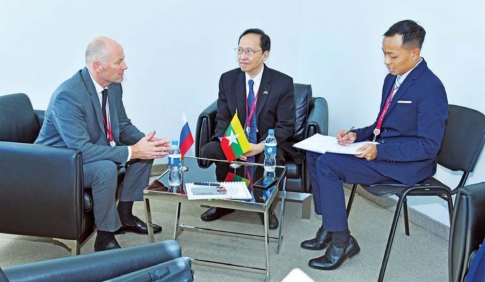 Union Minister for Science and Technology Dr Myo Thein Kyaw, who is a member of the Myanmar delegation to Russia, met with Director General of ROSCOSMOS State Space Corporation Mr. Yuri Borisov on Wednesday.