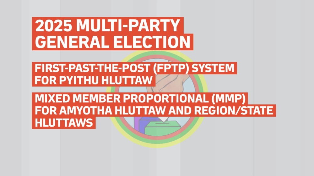 Myanmar commenced the first phase of its 2025 multi-party democracy general election on 28 December, covering 102 townships nationwide. The election is being conducted under a dual electoral system. The Pyithu Hluttaw continues to use the First-Past-the-Post (FPTP) system, while the Amyotha Hluttaw and Region/State Hluttaws are using a Mixed Member Proportional (MMP) system.