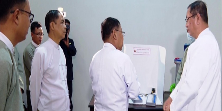 Afterward, the attedees and 86 officers and staff members observed the MEVM and conducted test voting. In the afternoon, the officials from UEC carried out clarification about Myanmar Electronic Voting Machine and test voting at the ministry of industry and 85 officers and staff members conducted test voting.