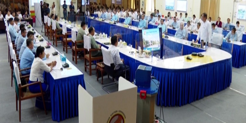 The clarification and demonstration of test voting regarding with Myanmar Electronic Voting Machine (MEVM) was held at the meeting hall of the Union Government Office in the morning on 14th August and the Union Minister for the Ministry of Union Government Office (1) SAC member Lt. Gen. Soe Htut, Union Minister for the Ministry of Union Government Office (2) U Ko Ko Hlaing, member of Union Election Commission U Aung Lwin Oo and U Ko Ko Lwin, responsible officials from the commission and officials from the Ministry attended the occasion.