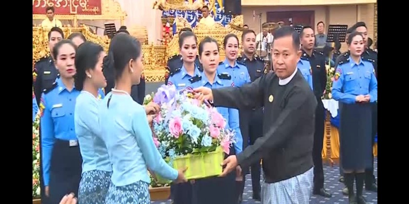 The Vice Senior General later presented honorary awards to vocalist U Tun Shwe, aged 90 and retired fire brigade members U Wan Thaung and U Tun Kyi, aged 94 and 92 respectively. The Vice Senior General later received a commemorative gift presented by the Union Minister for Home Affairs.