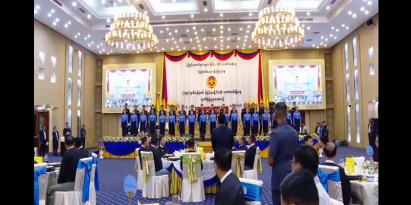 At night, a dinner reception was held in honour of the 77th anniversary Myanmar Fire Brigade Day. The Vice Senior General attended the dinner together with the high ranking officials, and fire brigade members.