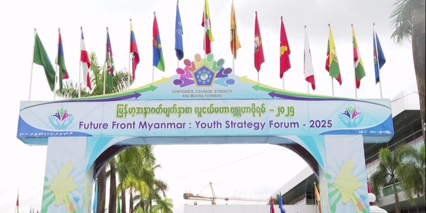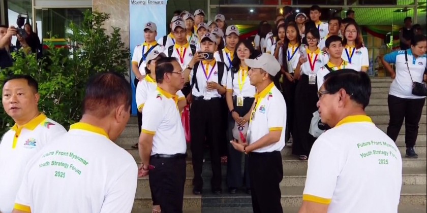 Later, the Union Minister and Chief Minister U Soe Thein met with youth delegates attending the Future Front Myanmar: Youth Strategy Forum 2025, held at Myanmar Convention Centre (MCC), and inspected preparations for the forum.