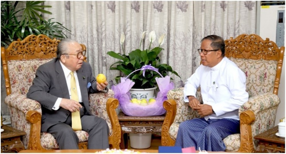 Union Minister for Agriculture, Livestock and Irrigation U Tin Htut Oo on Thursday received Chairman of the Japan-Myanmar Association Mr. Watanabe Hideo at his ministry in Nay Pyi Taw.