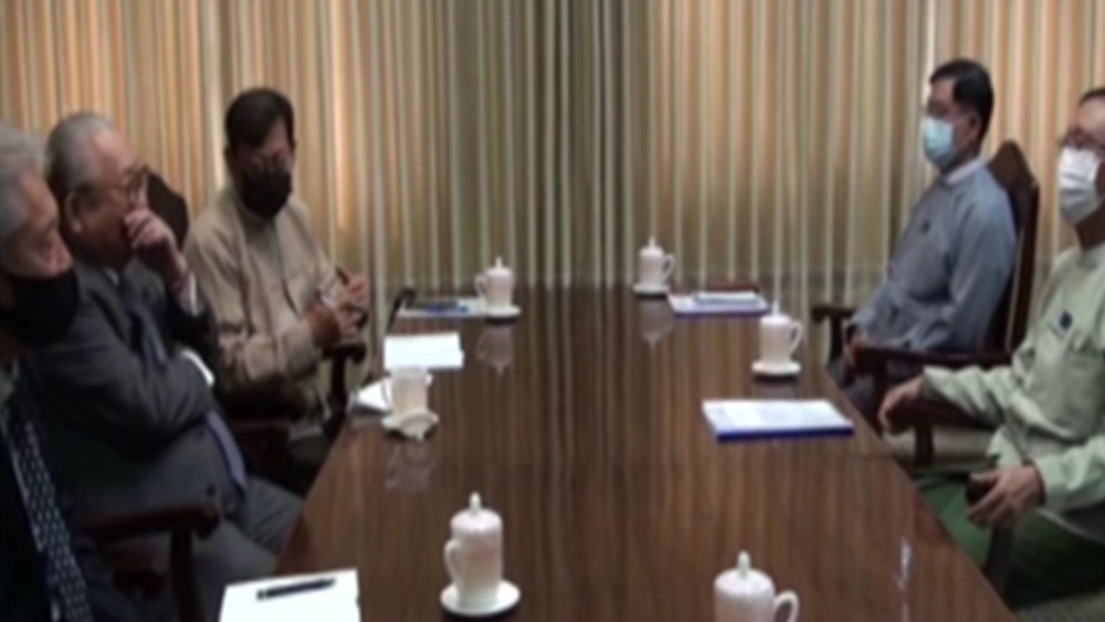 Union Minister for Planning and Finance U Win Shein on Monday received Chairman of the Japan-Myanmar Association Mr. Watanabe Hideo at his ministry in Nay Pyi Taw.