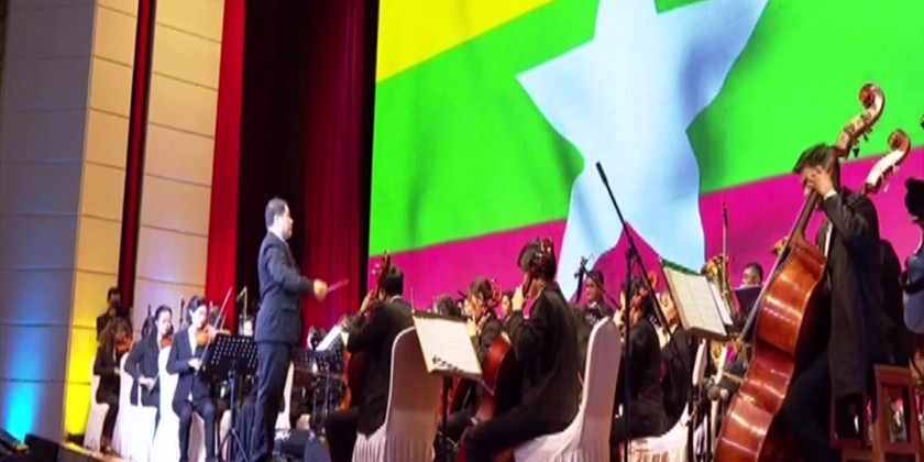 The Myanmar National Symphony Orchestra of Myanma Radio and Television under the Ministry of Information, staged a performance in Yangon on Sunday. Chairman of the State Administration Council Prime Minister Senior General Min Aung Hlaing and wife enjoyed the show at the Theater in the Myawady Media Center.