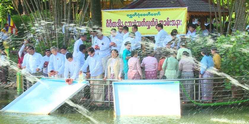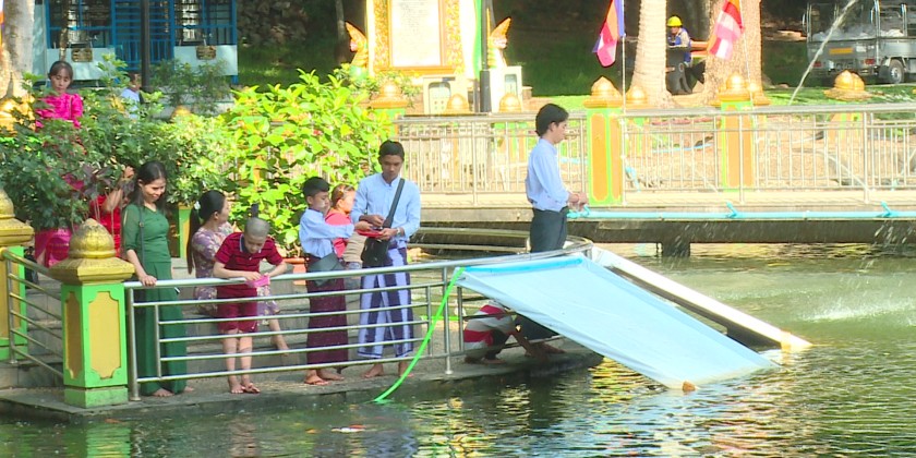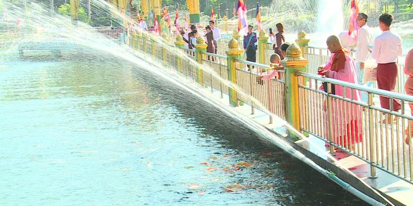 On the Myanmar New Year Day, Myanmar Buddhists visit to the pagodas to pay homage to the Buddha image, while taking mediation, keeping Sabbath and performing meritorious deeds as well as release fish to the lakes and rivers. Donating charity feasts is one of the customs during the New Year period.