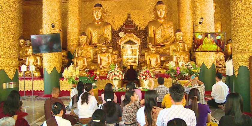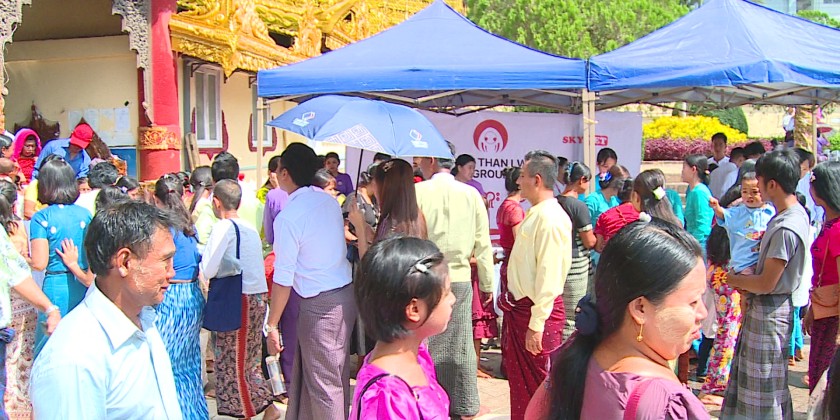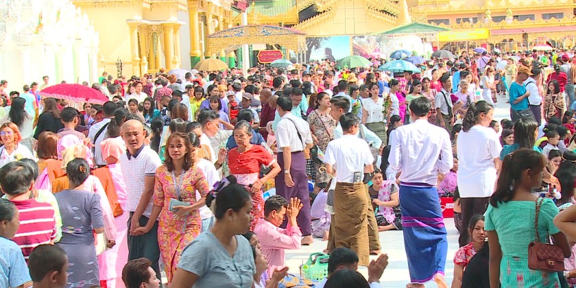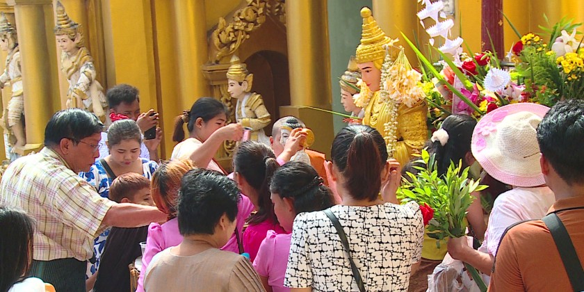 On the day of Myanmar New Year, people perform meritorious deeds at the pagoda and temples across the country.