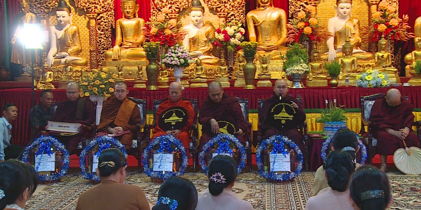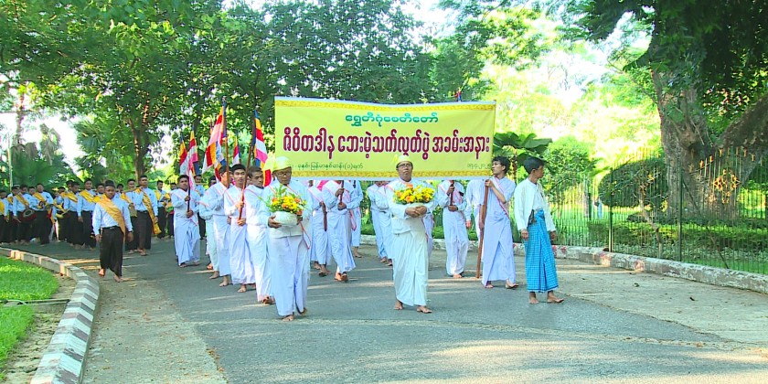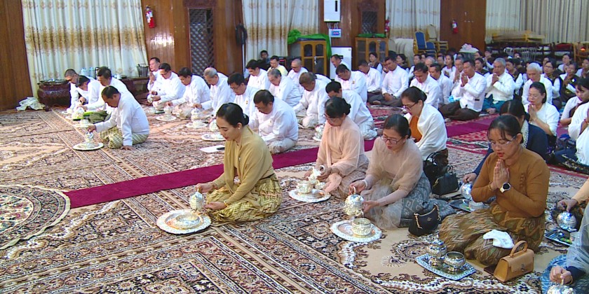 At the Shwedagon Pagoda in Yangon, the Pagoda Board of Trustees organized a ceremony to offer alms to the Shwedagon Pagoda, along with the donation of dawn meal to the Sayadaws and members of the Sangha. This event also included recitation of the Parritta Suttas by the Sayadaws and offertories donation to the members of the Sangha.
