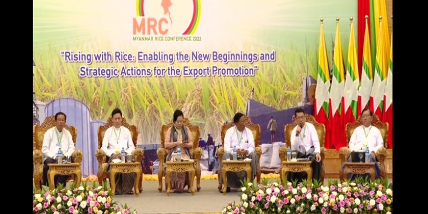 The second day of Myanmar Rice Conference 2022 co-organized by the Ministry of Commerce and Myanmar Rice Federation was held at the Myanmar International Convention Centre-II in Nay Pyi Taw at October 7 and attended by SAC member Phado Mann Nyein Maung, Union Minister for Commerce, regions and states ministers for economic affairs, experts on rice and paddy sector and entrepreneurs.