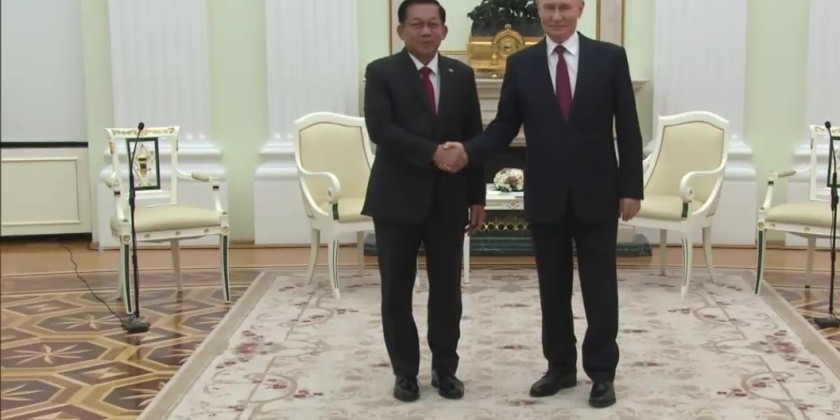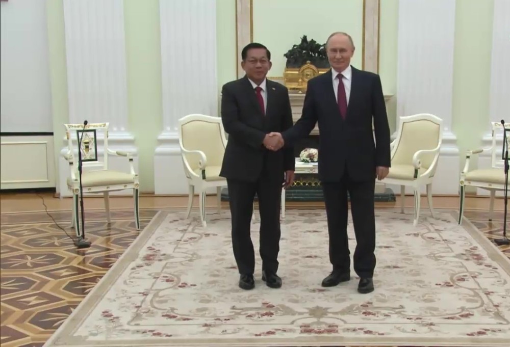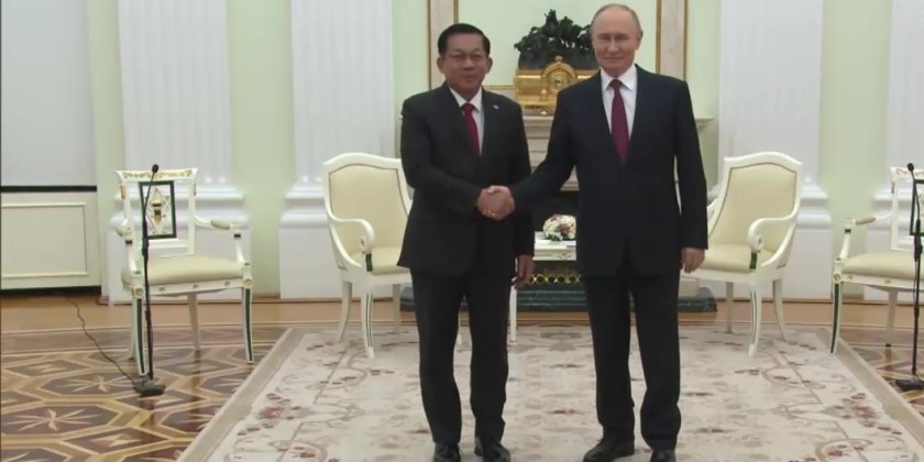 Acting President and Chairman of the State Security and Peace Commission Senior General Min Aung Hlaing met with President of the Russian Federation H.E Vladimir Vladimirovich Putin at the Kremlin Palace in Moscow on Thursday.