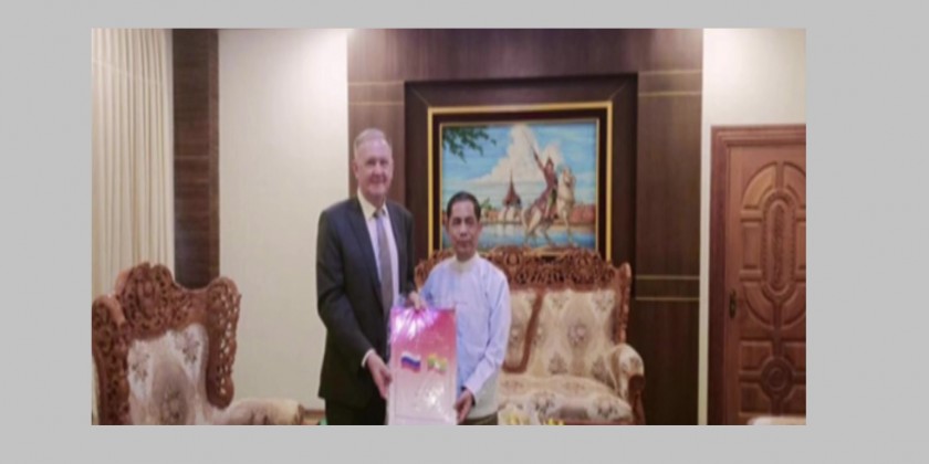 During the meeting at the Union Minister’s Office in Nay Pyi Taw on Wednesday afternoon, the Union Minister congratulated the Ambassador on being conferred the Honorary Title “Wunna Kyaw Htin” for his outstanding performance in enhancing friendly cooperation between the Republic of the Union of Myanmar and the Russian Federation.