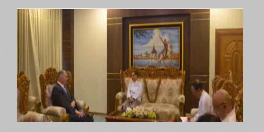 Union Minister for International Cooperation U Ko Ko Hlaing received Dr. Nikolay Listopadov, the Russian Ambassador to Myanmar, who is leaving Myanmar after completion of his tour of duty in Myanmar.