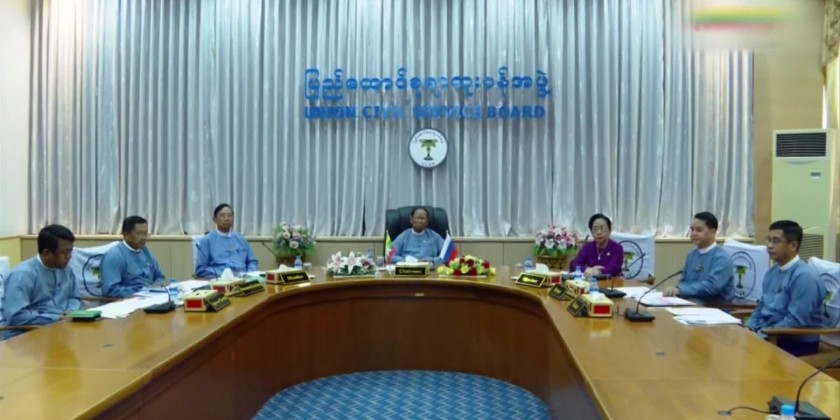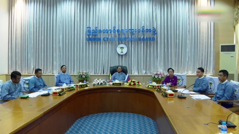 Chairman of the Union Civil Service Board U Sit Aye met with a delegation from the North-West Institute of Management of Russian Presidential Academy of National Economy and Public Administration (NWIM RANEPA) led by the Vice Chairman of Committee for External Relations of St. Petersburg via video conferencing at the reception hall of the Union Civil Service Board in Nay Pyi Taw on Monday.