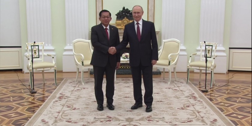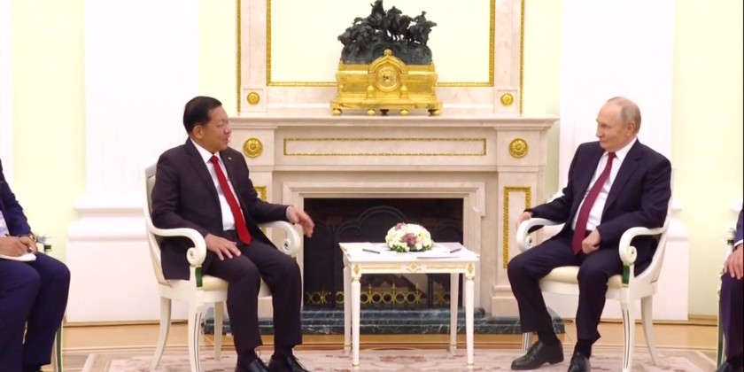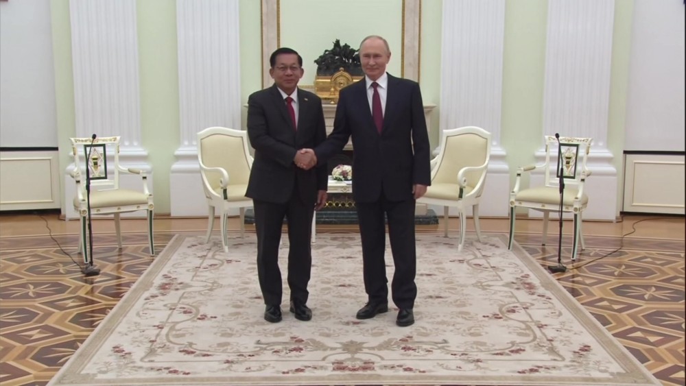 Acting President and Chairman of the State Security and Peace Commission Senior General Min Aung Hlaing, who is on a working visit to the Russian Federation, held a meeting with the President H.E. Vladimir Vladimirovich Putin, at the Kremlin Palace in Moscow on Thursday evening.