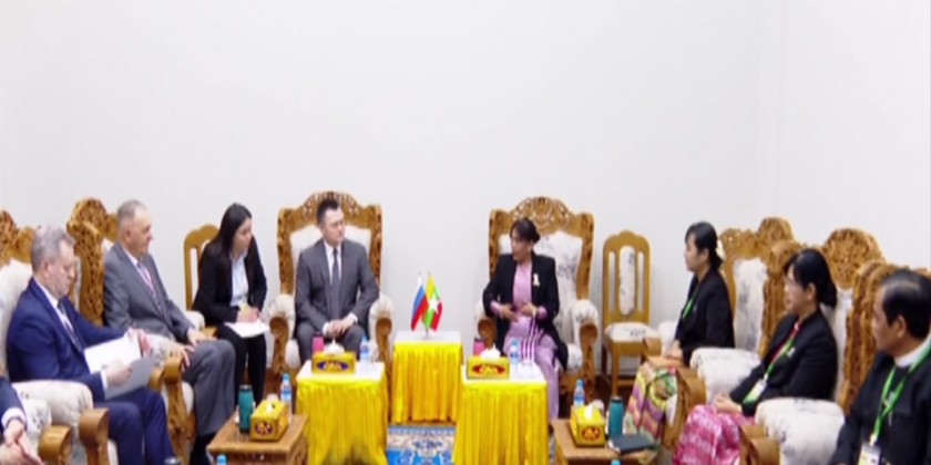 Union Minister for Legal Affairs Union Attorney General Dr. Thida Oo received a delegation led by the Prosecutor General Mr.IgorKrasnov of Russian Federation at the credential hall of the Ministry of Legal Affairs in the morning on 22nd March.