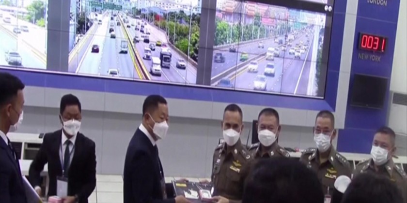 The Myanmar delegation arrived at Bangkok Police Centre on June 6 and the Centre in charge explained the security affairs and monitoring system for traffic jams in Bangkok and the Deputy Minister gave presents.