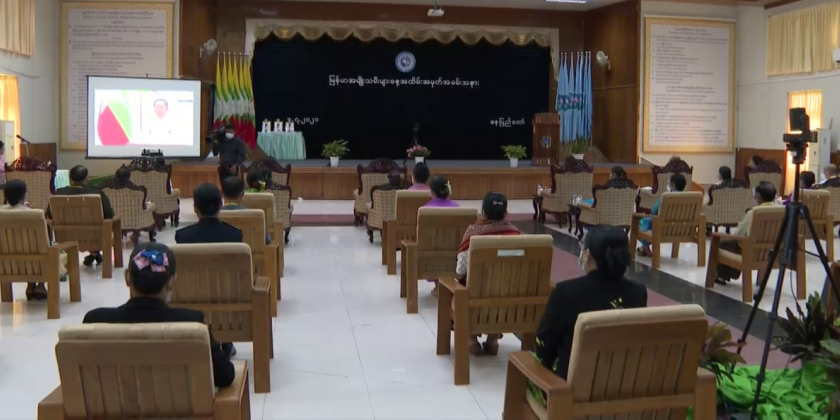 Members of State Administration Council Daw Aye Nu Sein, Jeng Phang Naw Taung, U Shwe Kyein, wives of SAC members U Maung Har, Saw Dannial and Dr Bayna Aung Moe, Union Minister Dr Thet Thet Khaing, Union Attorney General Dr Thida Oo, women members of union-level organizations, permanent secretaries, director-generals, deputy directors-general, chairperson of Myanmar Women’s Affairs Federation, chairperson and members of Myanmar Women and Children Development Foundation, wives of the members of union-level organizations, chairs, secretaries and officials of the committees from Nay Pyi Taw, regions and states attended the event through the online system.