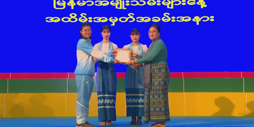Cash awards and certificates of honor were awarded to 4 outstanding students who were included in the top-10 list of the whole country for 2023 matriculation examination, 7 outstanding women athletes from the 32nd Southeast Asian Games and 1 from the 12th Southeast Asian Para Games from Yangon Region respectively.