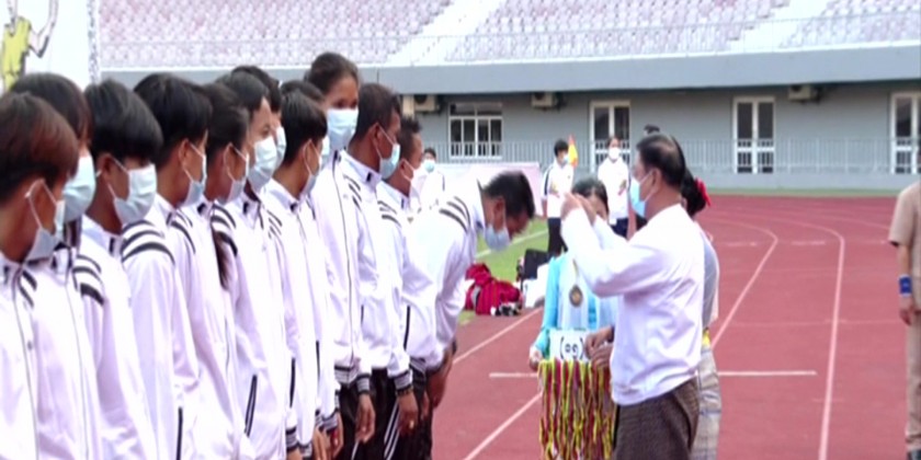 The final match and prize awarding ceremony of Regions and States U-25 Women Football Competition organized by the Ministry of Sports and Youth Affairs was held in the afternoon on January 21 in line with the COVID-19 containment measures at the WunnaTheiddi Football Ground, Nay Pyi Taw and the Chairman of State Administration Council Prime Minister Senior General Min Aung Hlaing and wife Daw Kyu Kyu Hla attended and supported the games.
