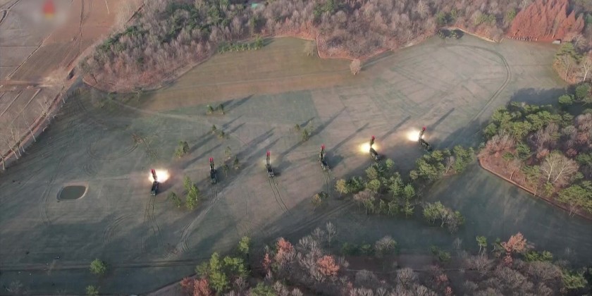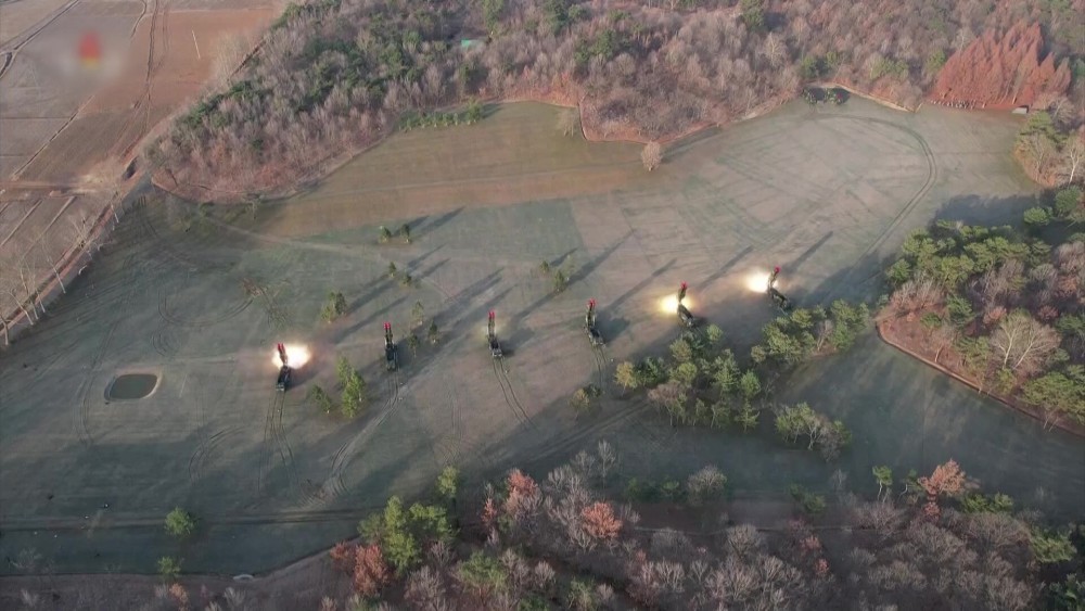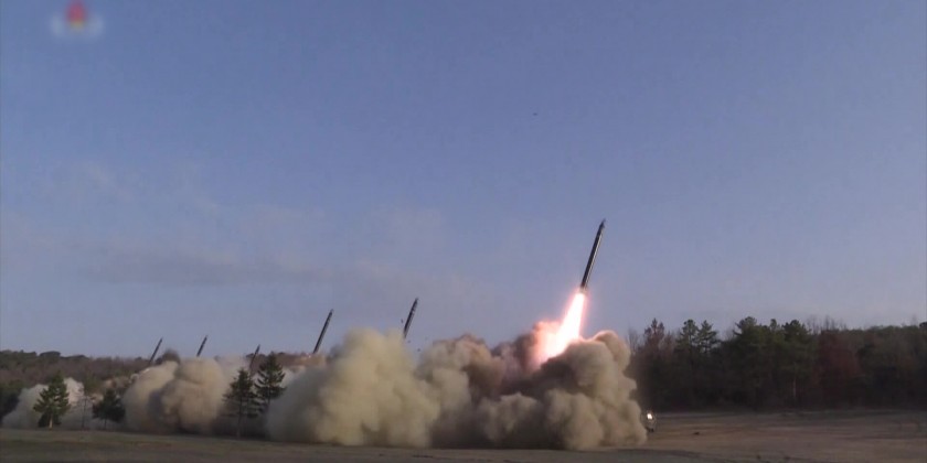 The moment the launchers on a vehicle are erected, multiple missiles soar into the sky concurrently. South Korea’s Joint Chiefs of Staff said North Korea fired what was presumed to be KN-25 short-range ballistic missiles from super-large 600mm multiple rocket launchers. The projectiles were fired from Sariwon in Hwanghaebuk-do Province and flew about 400km before falling into the East Sea.