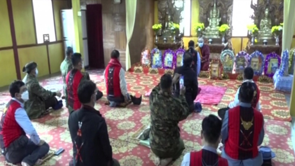 The Sagaing Region Chief Minister U Myat Kyaw together with the region government ministers and departmental officials arrived at Nan Yun Townshp of Naga Self-Administered Zone in the afternoon on 16th January and the chief minister proceeded to Theravada Buddha Sasana Missionary Central Monastery and offered offertories, foodstuffs and cash donation to the Presiding Sayadaw Baddanta Nandapala.
