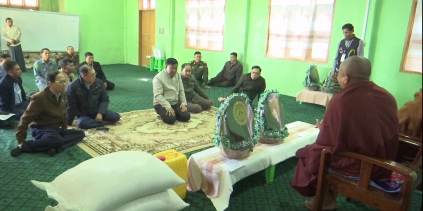 Following this, the Union Minister and party warmly greeted and took commemorative photos with the Naga ethnic tribes who attended the 2026 Naga Traditional New Year Festival. The Union Minister and partys then toured traditional cultural exhibitions and departmental exhibitions. In the afternoon, the Union Minister and party visited the Theravada Buddhist Missionary (Central) Monastery in Leshi Town, paid respects to the Missionary Leader Sayadaw, and offered alms rice and other donations.
