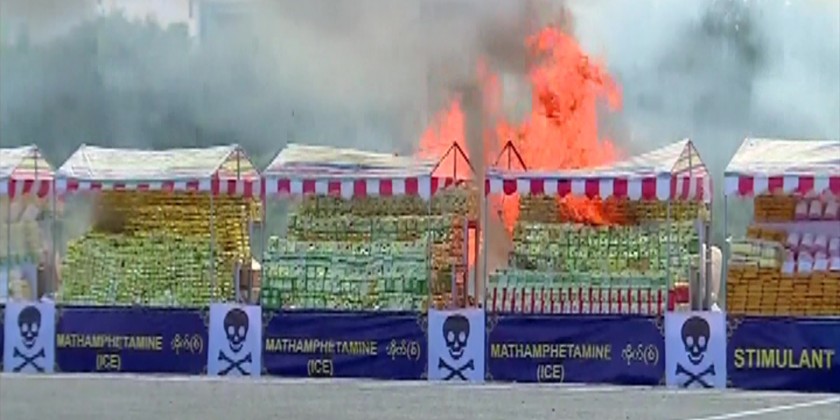 Narcotic drugs worth over 642 million US dollars were burned in Yangon, Mandalay and Taunggyi on June 26, marking the International Day against Drug Abuse and Illicit Trafficking.