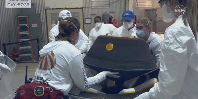 The largest sample ever collected from an asteroid in space, and the first for NASA, landed in the Utah desert seven years after the mission's launch. A NASA team retrieves the Osiris-Rex sample return capsule at a base of the Utah Test.