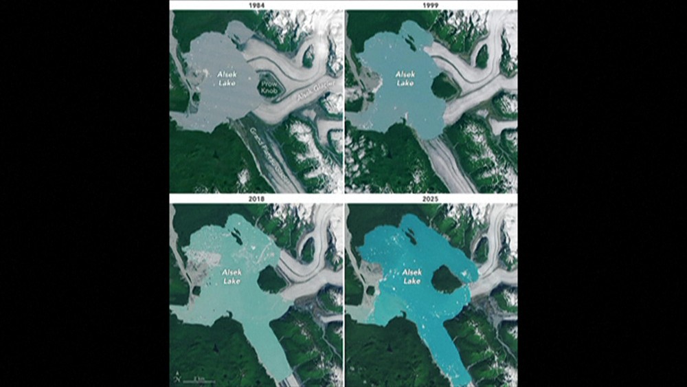 The Nasa Earth Observatory shared pictures of what it calls "a brand new island in Alaska": the small mountain Prow Knob was once encircled by the Alsek Glacier but this summer, they lost contact and Prow Knob is now surrounded by the waters of Alsek Lake. Based on satellite imagery, separation occurred sometime between July 13 and August 6, saidNasa.